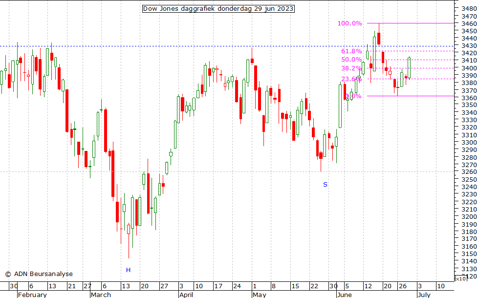 van een lagere top onder die rond 34.590 zou de zaak daarentegen