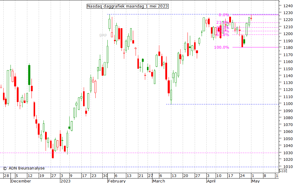 hammer. Gokkend op een eventuele daling heb ik ook hier daarom Fibonacci