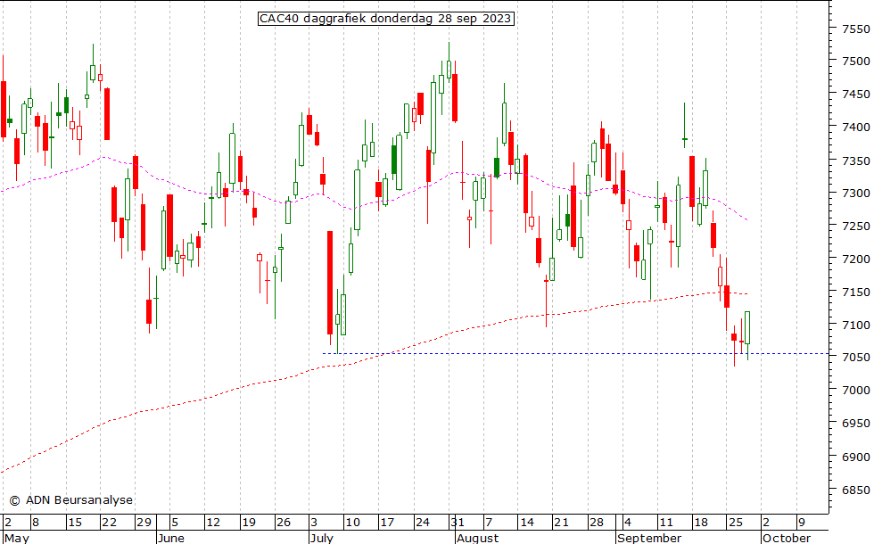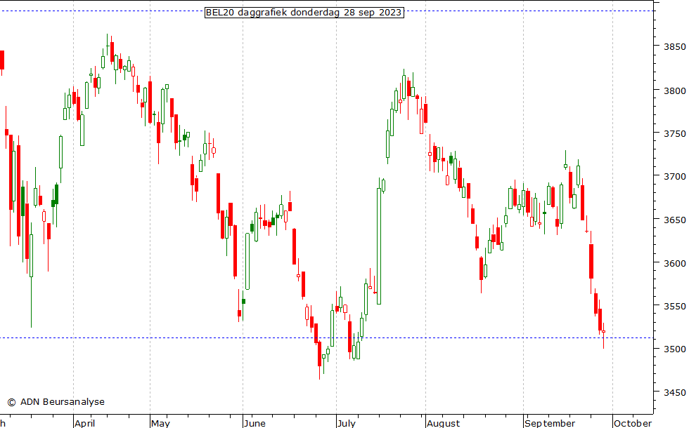De index is aangekomen bij de stippellijn rond 3.510. Bij dit