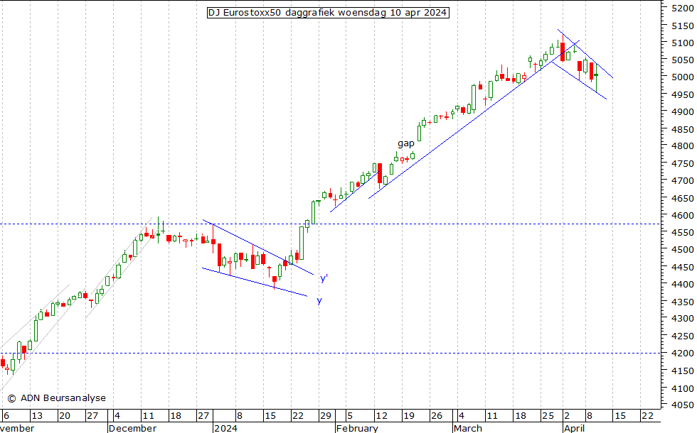 met dit patroon. Ook in de daggrafiek van de Eurostoxx 50 index