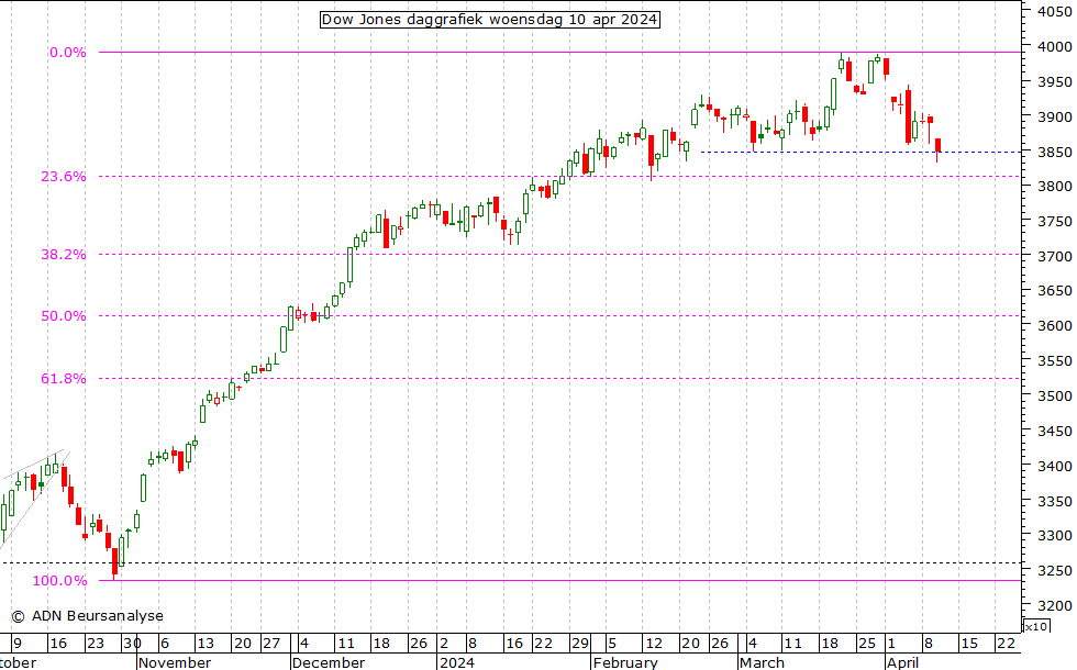 Wallstreet werd in de daggrafiek van de Dow Jones