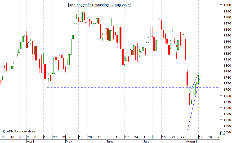 daggrafiek van de DAX. De wig die zich ontwikkelt wordt met de dag