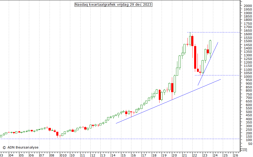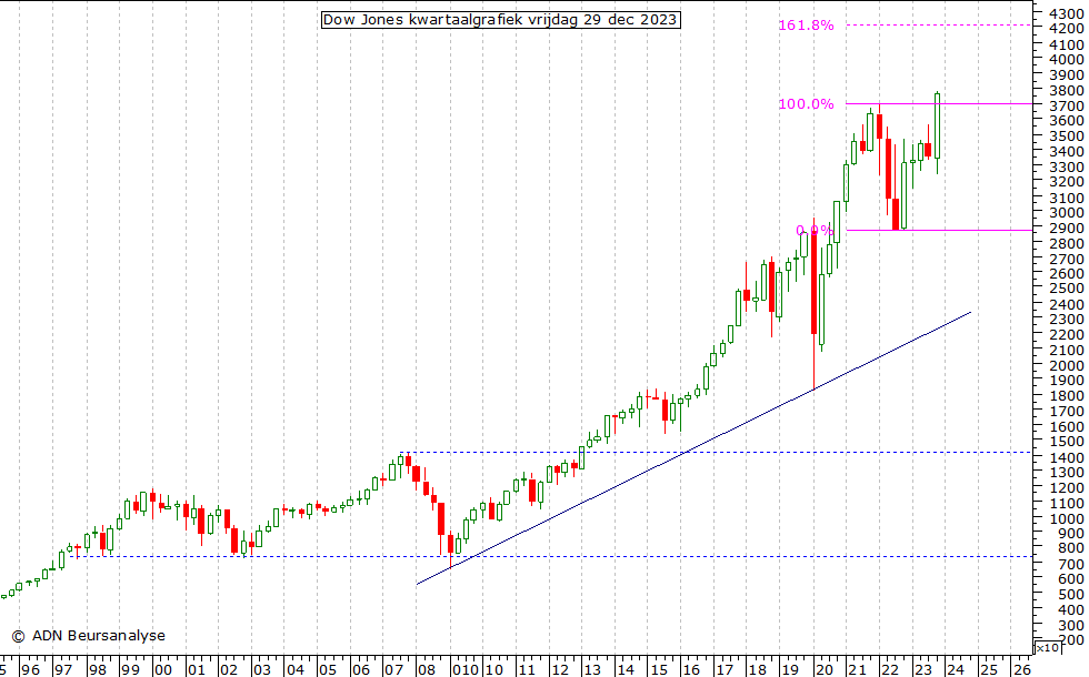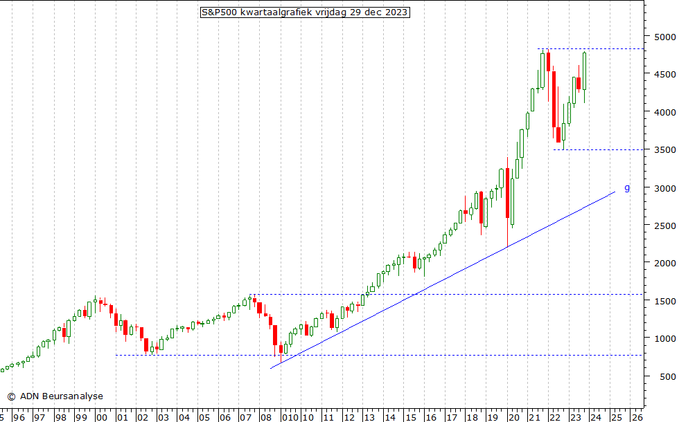 Amerikaanse beursindices. We beginnen met de kwartaalgrafiek van