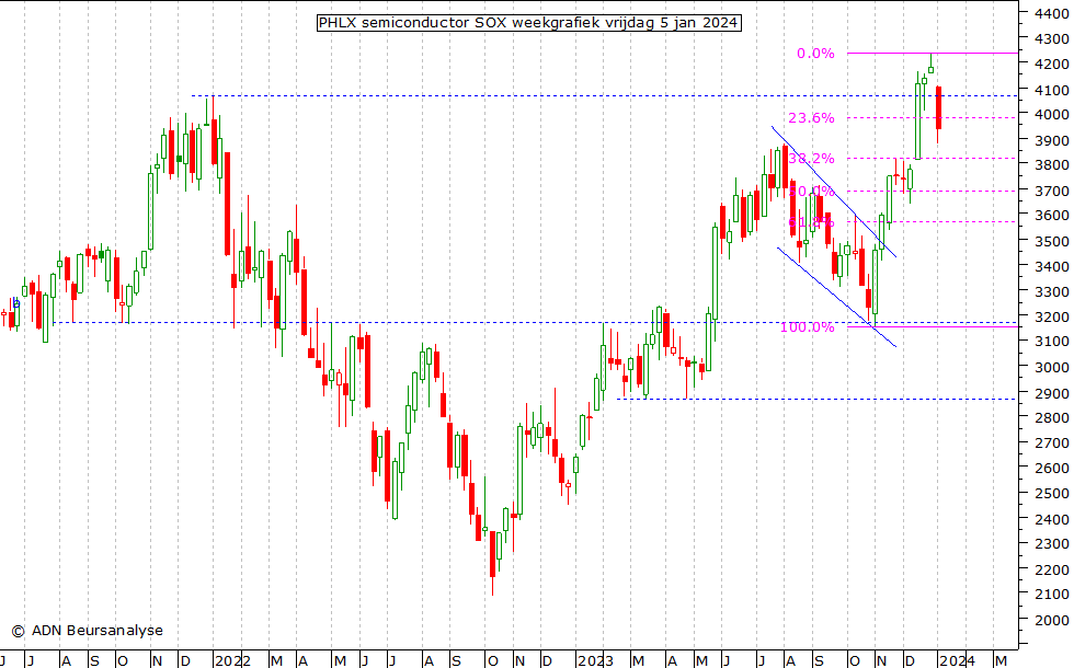 vrijdag echter bij het 23,6% niveau rond 14.535. Hier is nog een