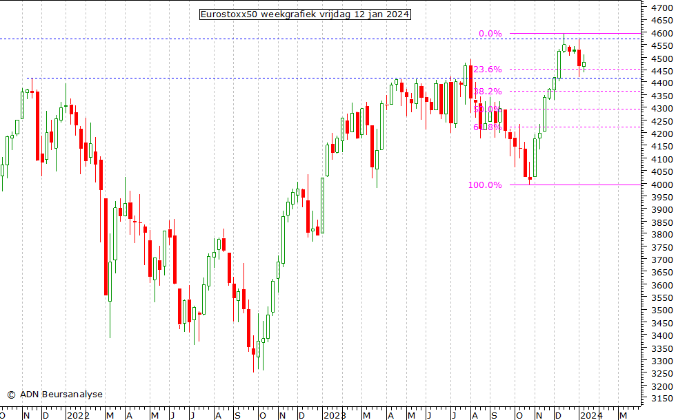 we naar de weekgrafiek van de Eurostoxx50 dan zien
