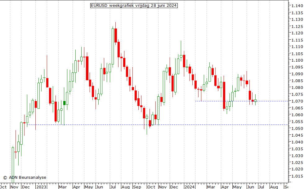 week vond de Euro in de weekgrafiek van de munt ten opzichte van
