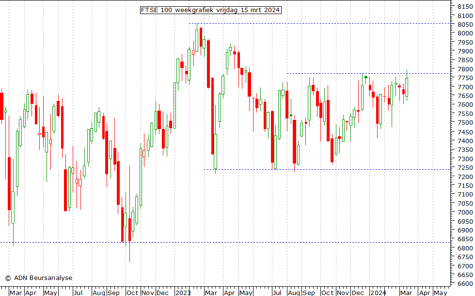 weekslot boven 7.770 is zoals u in de FTSE100 weekgrafiek links