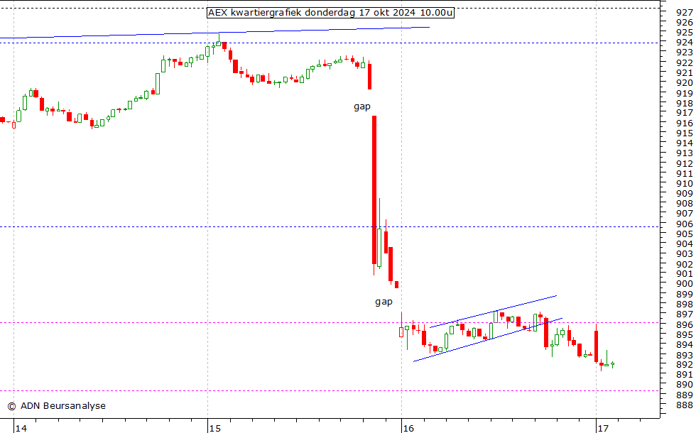 AEX. Dat lukte niet, want de AEX daalde direct. De kleine candles die
