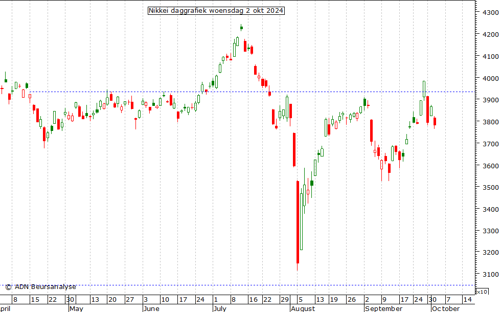 Vandaag is de Nikkei alsnog gedaald, namelijk met 2,2%. Het patroon van