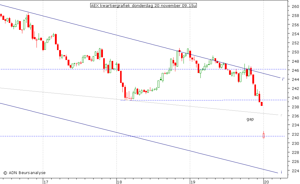 AEX-index. Deze opening lag ter hoogte van de bodem die vorige maand rond